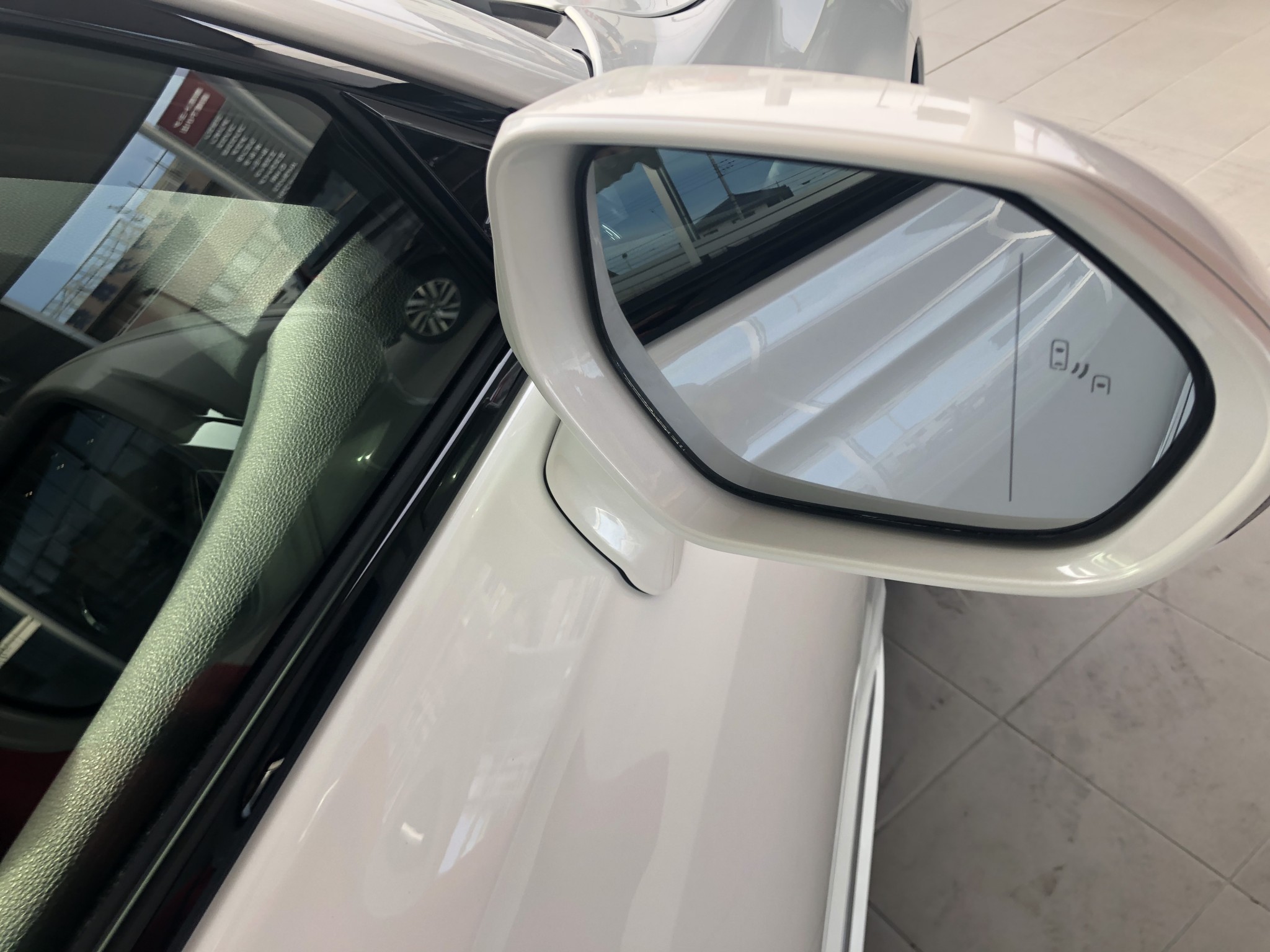 RS ADVANCE は RSより安全装置が充実しています。例えば、【ブラインドスポットモニター】といった後方車両への接近警報が左右のミラーに標準装備で付いています。