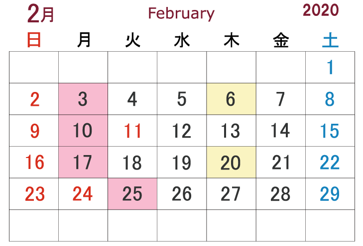 <2月の定休日>