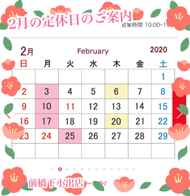 それでは、<2月の定休日のご案内>です。