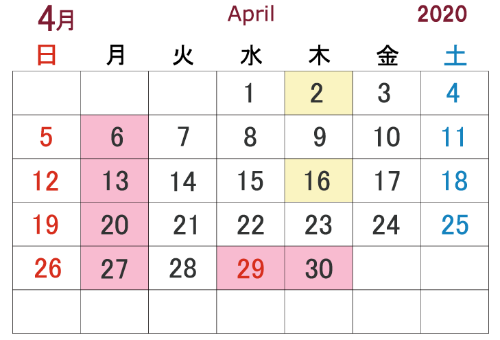 <4月の定休日>