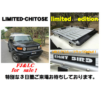 埼玉県から来ました、ルーフキャリアメーカーリミテッドチトセと申します。今回限定発売のハイブリッドエアロタイプをメインに、ルーフラックを特別価格にて