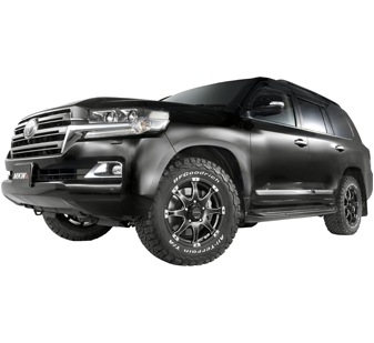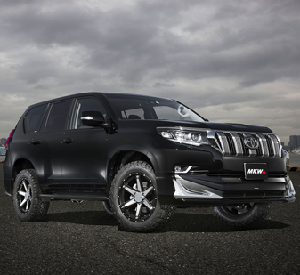 トライスターインターナショナルです。MKWホイールはランドクルーザープラド用の17インチ、18インチ、20インチと豊富なサイズとモデルをご用意しております。また、シチュエーションによって表情が変化する話題のグラファイトクリアも展示しています。ご来場のみなさん、この機会に現物を是非ご覧ください。