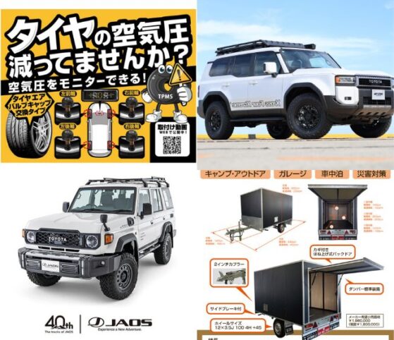JAOSは4WD&SUVの総合パーツメーカーとして、創業40周年を迎えました。BATTLEZサスペンションやアルミホイール、スタイリッシュな外装パーツなど、走りもルックスも妥協しないアイテムを多数展開しています。カスタマイズをご検討中の方はぜひJAOSブースへお立ち寄りください。スタッフ一同、皆様のご来場を、心よりお待ちしております。