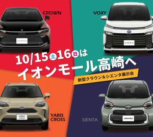 イオンモール高崎にて新型クラウン&新型シエンタを展示します!10/15(土)・10/16(日)