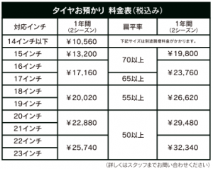 タイヤメンテナンスお預かりサービスの