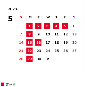 5月の定休日は・・・